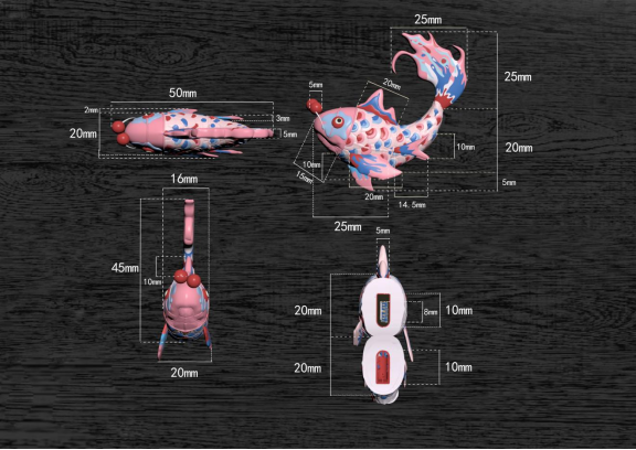 设计理念是传统民俗舞蹈的道具,用竹笺绑扎成鱼形状。早在明朝,就有“正月里来闹鱼灯”的习俗。2021年,“汪满田鱼灯”晋级安徽省民俗类非物貭文化遗产。“鱼”“余”谐音,鱼灯便寓意年年有余,肥壮的鲤鱼,金色的鳞片,更是丰收和吉祥的象征。