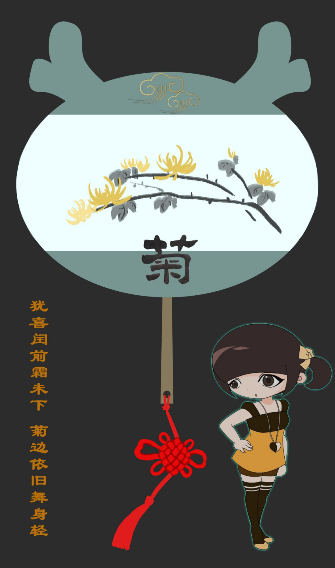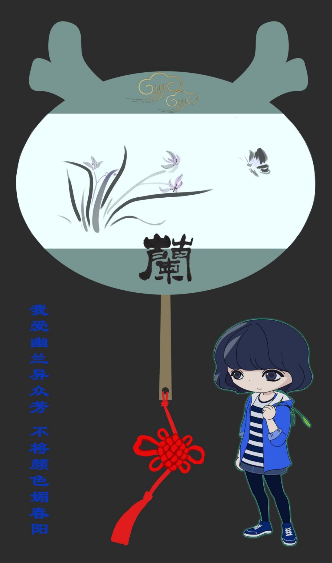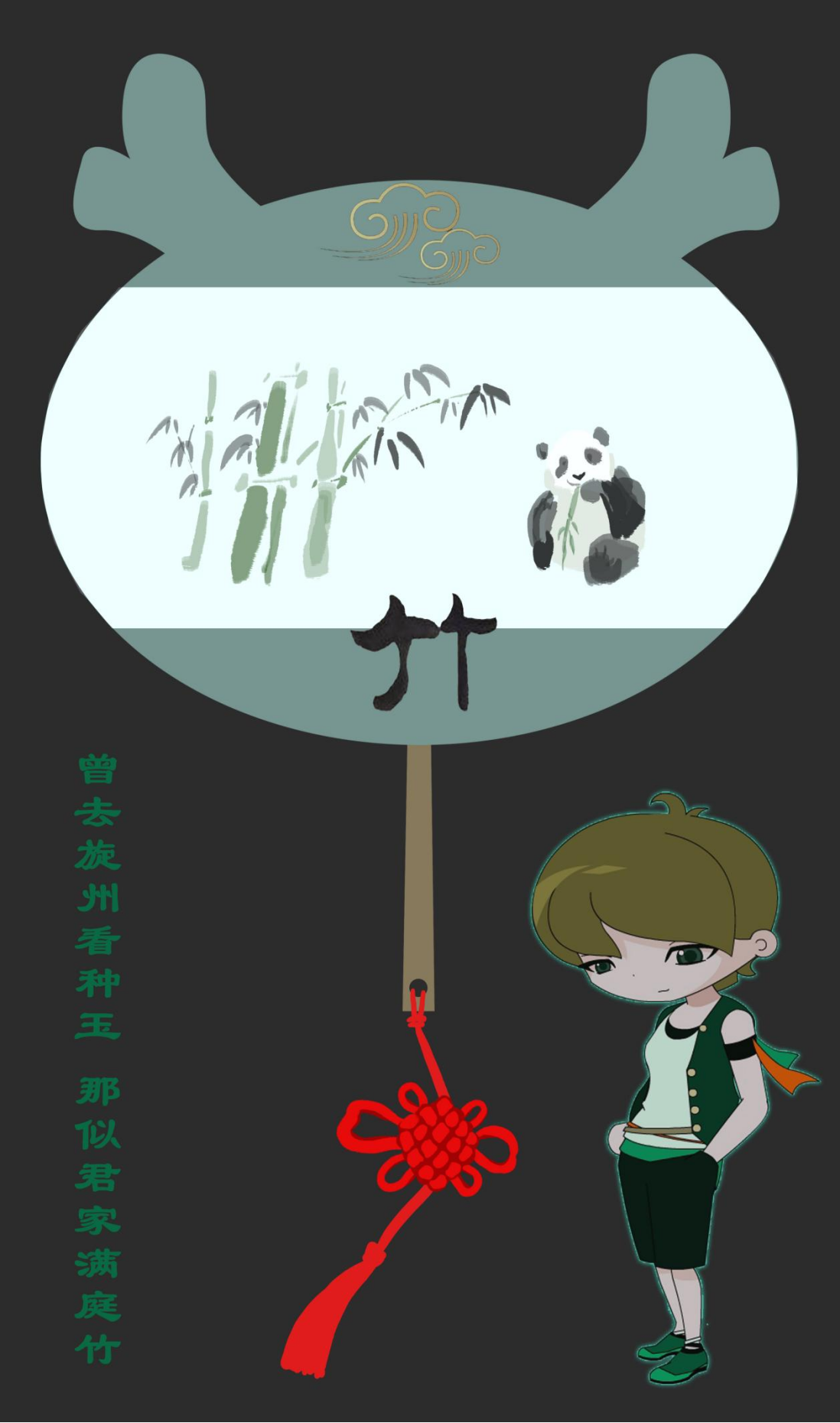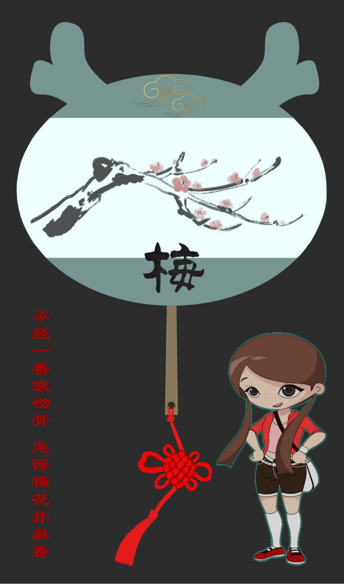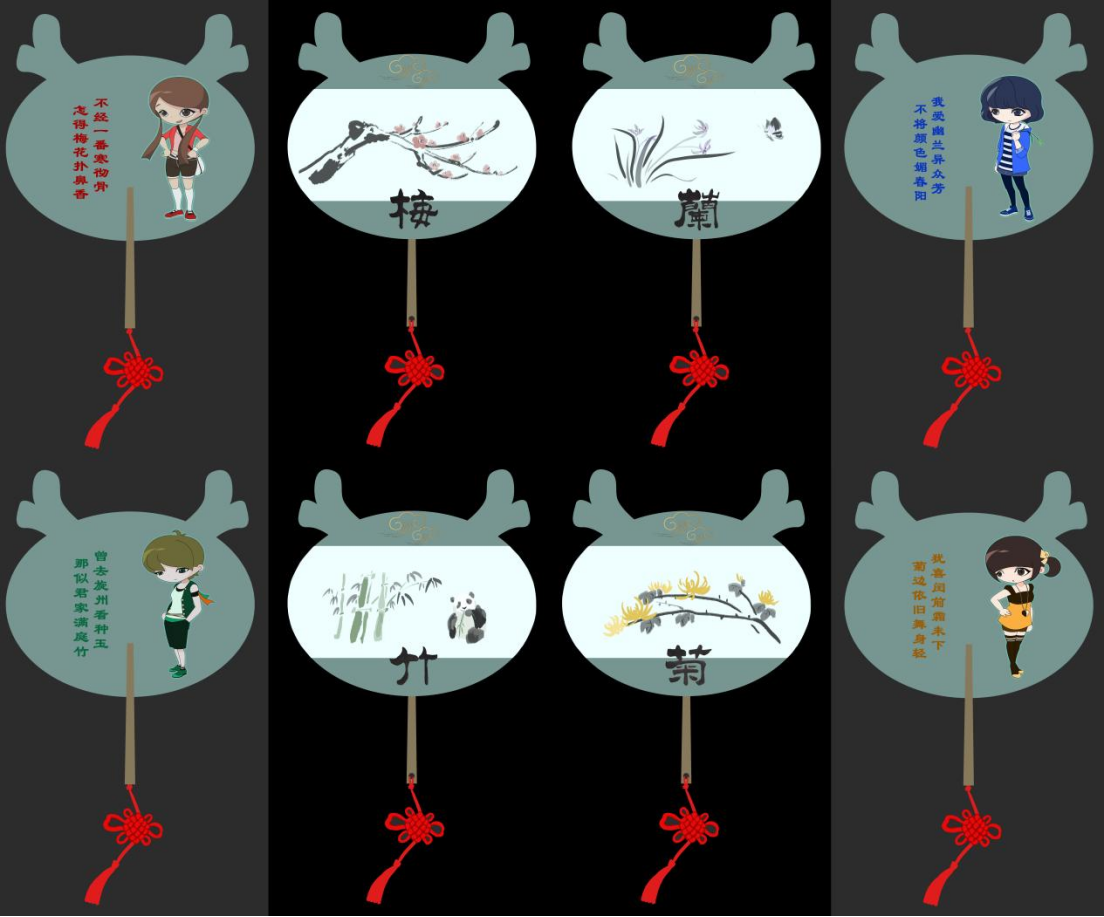 扇坠是象征团结、幸福、平安的中国结,特别为“四君子”设计了相符的可爱卡通形象和古代赞美诗句。雅致间不失活泼。生动有趣,生机盎然。