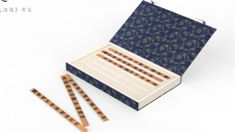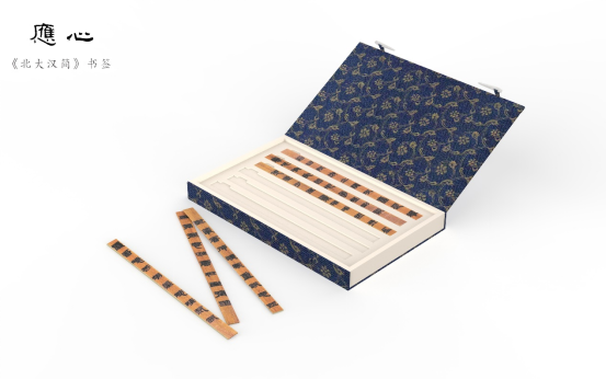 汉简是典籍宝库,具有重要学术价值和书法美学价值。北大藏西汉竹书或古朴典雅、或刚劲凝重,是西汉隶书艺术的瑰宝,《北大汉简·书签》将竹简化为书签,以线装书款锦盒装之,将一点文心化为书页中及案头心爱小物,与古籍应心,接续文脉。