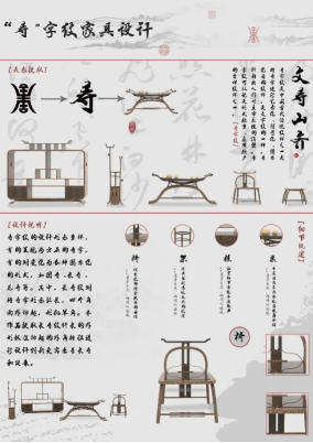 寿字纹的设计形态多样,有的呈现为方正的寿字,有的则变化为各种图案化的形式,如团寿纹、长寿纹、花寿纹等。其中,长寿纹则将寿字形态拉长,四个角再向外扬起,形似羊角。本作品提取长寿纹纤长的外形抓住扬起的外在特征,进行设计创新更寓意着长寿和健康。