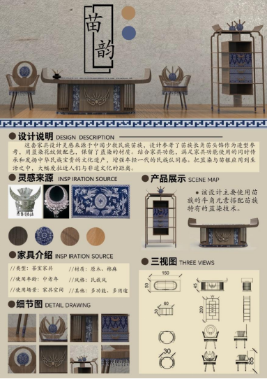 文创大赛“薪火”赛道作品:“苗韵”茶室家具