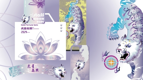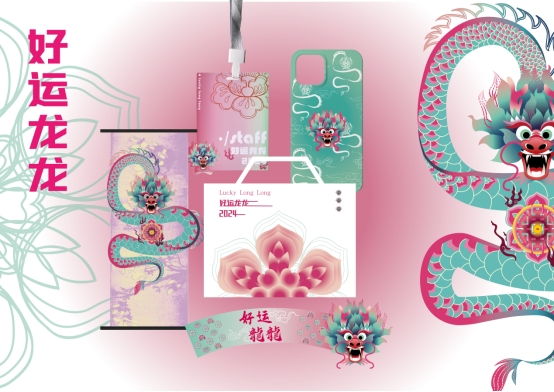 作品将四大神兽的气质、颜色、形态特性与中国传统壁画花纹相结合,画面配色符合神兽本身,并且撞色也使得视觉效果更加年轻化。