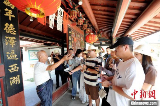 8月8日,漳平当地民俗文化研究专家卢庆顺向记者介绍刘氏九龙三公民间信仰文化。中新网记者 张金川 摄