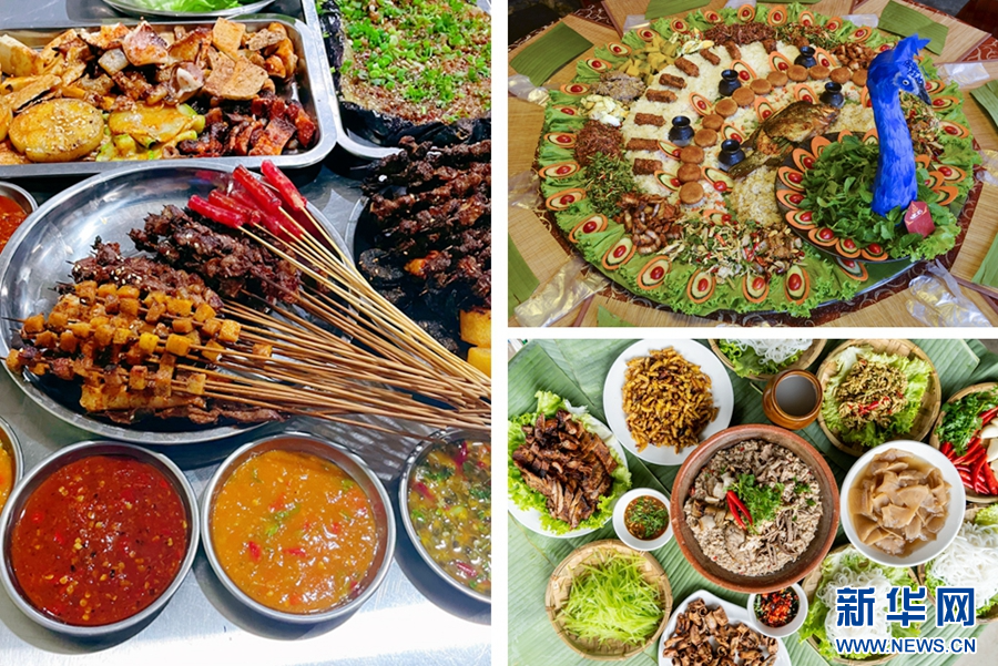 芒市美食傣味烧烤、孔雀宴、过手米线(资料图)。新华网发(德宏州文化和旅游局供图)