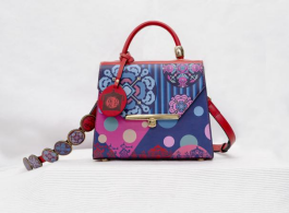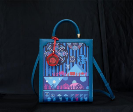 本系列设计以中国国家非遗清代苗族挑花“迎亲图”为设计灵感来源,将传统苗族特色月夜迎亲群像图纹与当地特色的山间林景进行相结合,三款包从苗族少女竹接月夜浅雾“花窗望嫁”的蓝色主调,到少女憧憬浪漫的“花好月圆”与新郎携手同行的红蓝互补,最后到共建为家“繁华似锦”的美好生活。