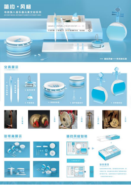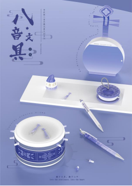 本系列文具的设计理念源于中国黔西南地区传统文化的瑰宝——“布依八音”乐器。设计师提取的其中的牛角胡、葫芦胡金钗、刺鼓、月琴五种代表性乐器造型,将其与现代文具设计相融合,打造出一套别具一格的文创文具。