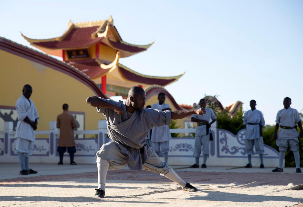 这里便是赞比亚少林寺文化中心。作为国家级非物质文化遗产,少林功夫已有1500多年历史,长期以来广受世界各地人民群众喜爱,被视作中国文化代表性符号之一。2021年建成开放的赞比亚少林寺文化中心已成为中国少林文化在非洲生根发芽、中华优秀传统文化走向世界的一个缩影。