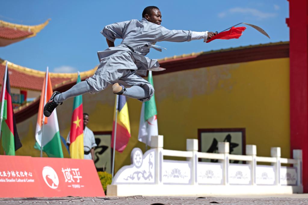 赞比亚少林寺文化中心目前也是中国嵩山少林寺非洲总部所在地。去年6月,首届非洲少林考功大赛在此举行。少林拳、象形拳、通背拳、七星拳……来自22个非洲国家的100余名少林“洋弟子”汇聚一堂,切磋武艺。这一年,少林非洲联合会正式成立,标志着中国少林文化在非洲的发展更为深入。
