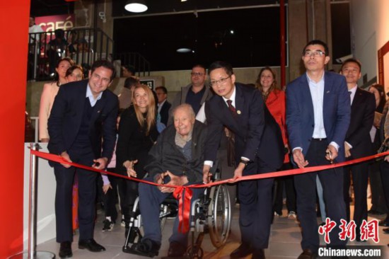当地时间8月12日,巴西圣保罗州坎皮纳斯市,“中国艺术五千年 塞奎拉·莱特收藏”启幕。图为收藏家塞奎拉·莱特(前左二)在开幕式上剪彩。中新社记者 林春茵 摄