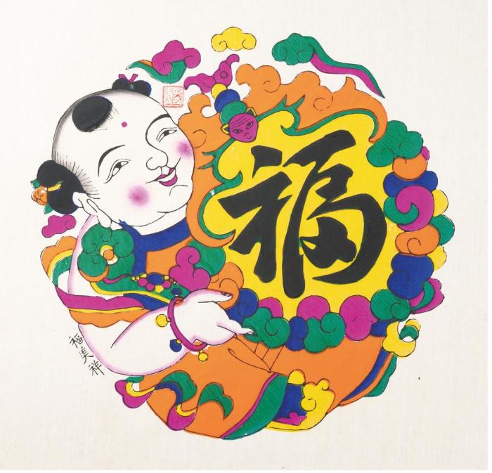 滩头年画《福禄寿禧》之《福》。隆回县委宣传部供图