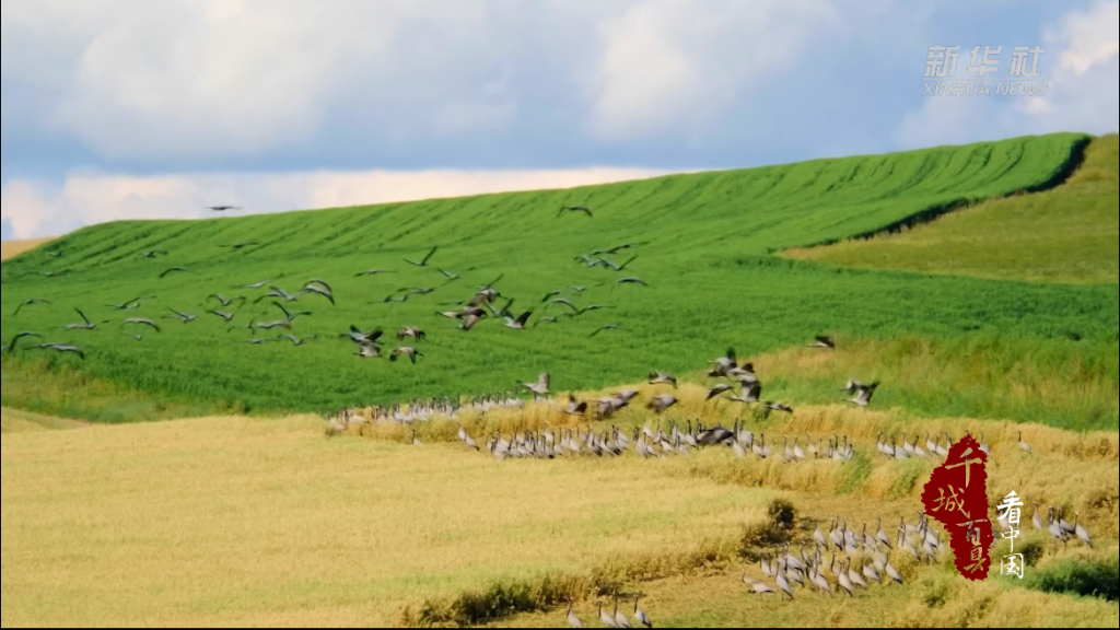 在广袤的额仑草原,蓑羽鹤的身影与草原的美景融为一体,构成一幅绝美画卷,让人沉醉在这大自然赋予的诗意世界中。