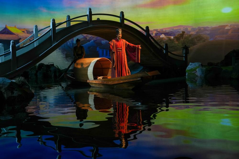 演员在行浸式多维空间剧《只此周庄》中表演(8月27日摄)。