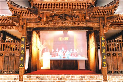 展厅里,原貌呈现的徽州地区古戏楼颇具韵味,京剧、黄梅戏、昆曲等16个戏曲非遗项目的经典选段,通过名家现场展演和纱幕投影的形式,在戏台上轮番演绎,为观众带来沉浸式体验;在传统美术和传统技艺单元,展出刺绣、年画、石雕、木雕、营造技艺等60个项目,重点展示非遗项目的制作技艺,系统呈现从材料到成品的制作过程;在传统制茶技艺单元,通过展示茶叶的种植场景、制作技艺、文化空间,以茶叙事、以茶述理、以茶论道;在民间文学和民俗单元,重点展出三大史诗、端午节等14个项目,表现非物质文化遗产在连结民族情感、维系国家统一方面发挥的重要作用……