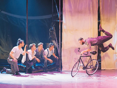 开幕式上,加拿大杂技表演艺术家带来了剧目《马戏机器》,剧中6位角色各有所长,他们凭借精湛的技艺,巧妙驾驭跷跷板、杂耍棍、架子鼓乃至浴巾等各式道具,表演既洋溢着诗意,又不失诙谐幽默与风趣。
