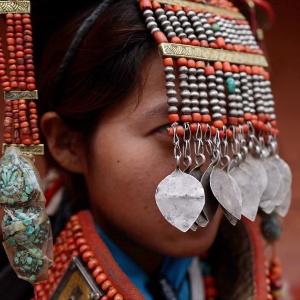 普兰县科迦村里有7户人家保存着7套祖传服饰,一套重达25公斤,装饰有黄金、白银、松石、玛瑙、珊瑚、珍珠等,承载和沉淀了百年时光,堪称“穿在身上的千年史”。