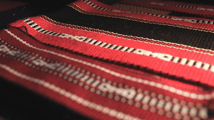 佤族织锦采用棉、麻等天然材料,染料就地取材,使用天然植物或矿物制成。使用的主要工具是踞织机,也称为腰机,由竹木制作而成。基本色调为黑色和红色,黄、绿、白、蓝相间,粉色、棕色为辅助色,形成独特色彩风格。图案多样,有条纹、几何纹等,线条流畅、视觉突出。