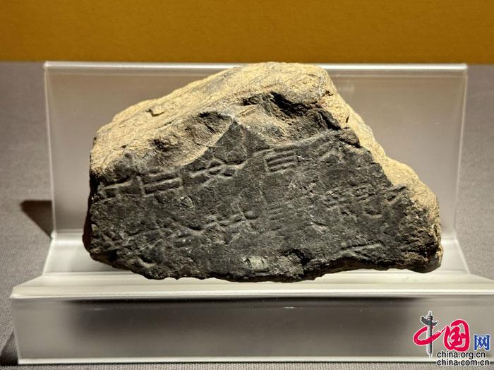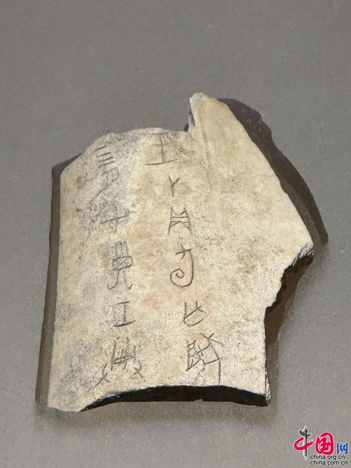 商代“工典”卜骨。卜辞大意为商王占卜,贞问下一旬有无灾祸。辞末记录了四月“甲子”日要举行祭祀仪式。 摄影 中国网记者 苏向东