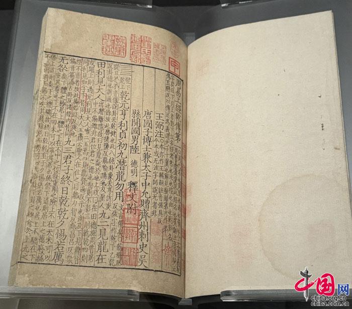 《周易》被誉为“群经之首”,是中国传统思想文化中自然哲学与伦理实践的根源,是中华文明的源头活水,对中国文化产生了巨大的影响。图为国家图书馆藏宋刻本《周易九卷》,是三国魏人王弼所注并撰《略例》,体现了其试图以新的玄学代替已渐失势的汉儒经学的思想。 摄影 中国网记者 苏向东