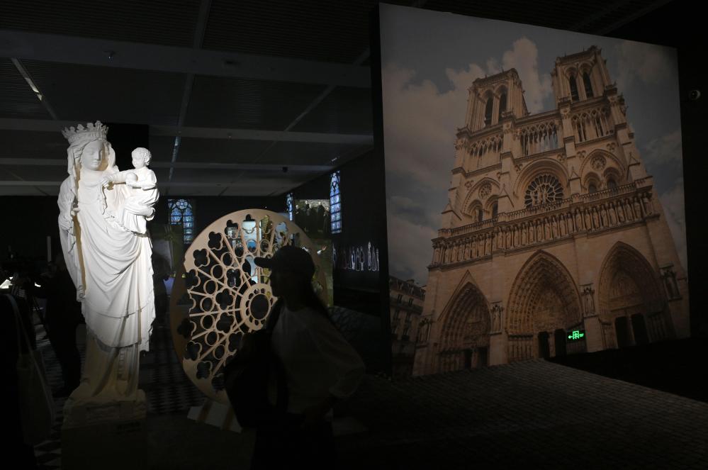 9月11日拍摄的巴黎圣母院模型。