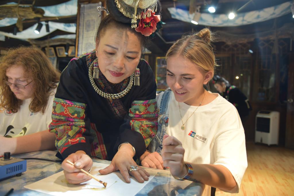 此刻,李文芳一家所居住的苗族传统吊脚楼,犹如一个生动的非遗课堂,为中美两国青少年搭建起关于中国民族文化体验、传承的交流平台。