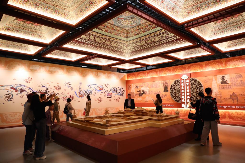 9月22日,游客在参观敦煌文化主题展。