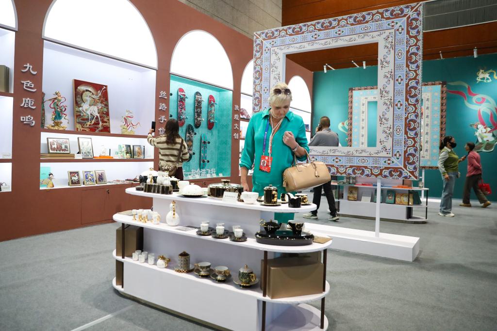 9月22日,游客在参观交响丝路·多彩华章——丝绸之路文化融合展。