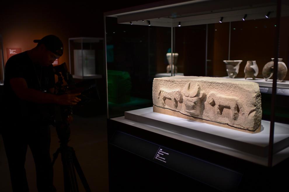 9月24日,媒体人员在香港故宫文化博物馆“中华文明溯源”特展媒体预展上拍摄。