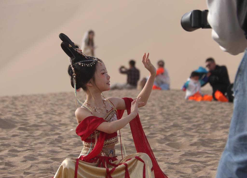 除了旅游观光外,近年来敦煌市还运营了汽车拉力赛、户外徒步节等赛事活动,研发了壁画临摹、彩塑创作等研学产品,打造了《又见敦煌》《乐动敦煌》《千手千眼》等众多脱胎于敦煌文化的演艺剧目,各行各业的活力不断涌现。