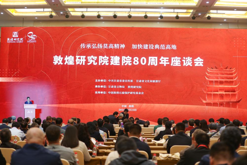 敦煌研究院建院80周年座谈会日前在甘肃省敦煌市举行。历史上,敦煌石窟营建不断的千余年间,商贸、手工艺、艺术等众多行业因窟而荣。千年后,敦煌文化同样带来社会兴旺发展的活力。