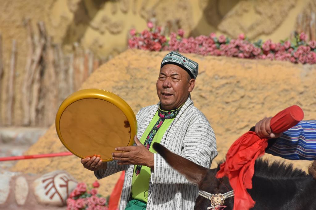 9月25日,演员在阿瓦提县刀郎部落景区表演。