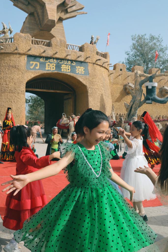 9月25日,小朋友们在阿瓦提县刀郎部落景区跳舞。