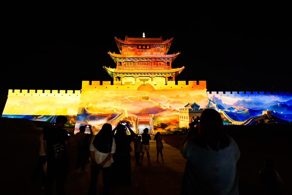 大漠日落,夜幕下的关城流光溢彩。传颂千古的边塞诗词,繁盛喧闹的丝路集市,鲜衣怒马的少年将军霍去病……闪耀在历史长河中的一幕幕,在古老城墙上活灵活现,令人目不暇接。今年暑期,嘉峪关关城景区全面开启夜游模式,运用激光投影、数字科技、舞台实景演艺等多元形式,使“天下第一雄关”在光影交织中焕发新颜,为游客带来前所未有的体验,掀起旅游新热潮。
