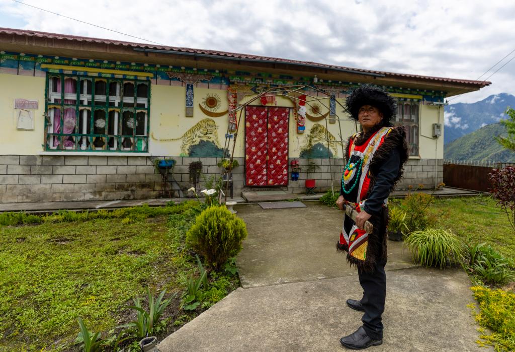 一边在传统的火炉上烧茶,一边从四开门的大冰箱中取出可乐待客;家里挂着游猎时代祖先留存下来的猎物皮毛,常常聚集到村里的水泥广场舞起“刀舞”……在西藏自治区林芝市墨脱县达木珞巴民族乡,传统与现代的融合随处可见。