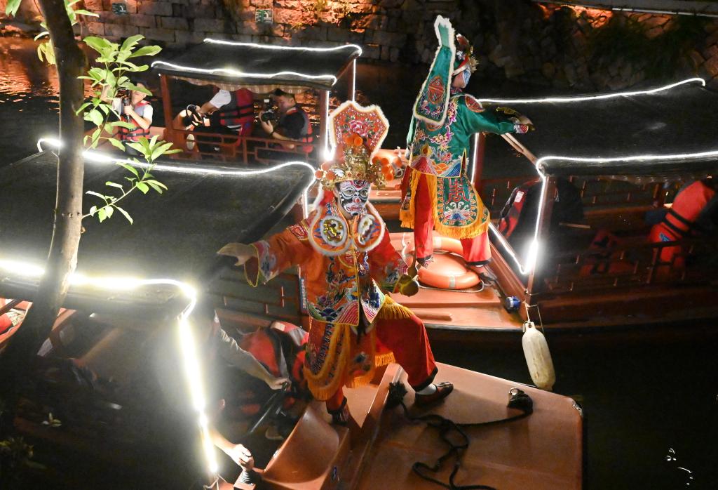 9月30日,演员在福州上下杭三捷河上巡游表演。