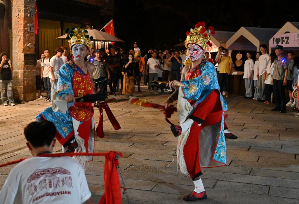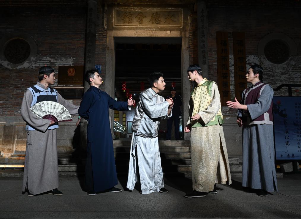 当日,在福州市上下杭文化休闲旅游景区,一场沉浸式演绎拉开了首届上下杭国潮非遗艺术季的序幕。依托河流与两岸的历史建筑、商户、场馆等,并结合国潮时尚,演出人员围绕非遗文化、信俗文化以及上下杭独特的码头文化等进行实景表演,让游客近距离感受福州上下杭的文化底蕴。