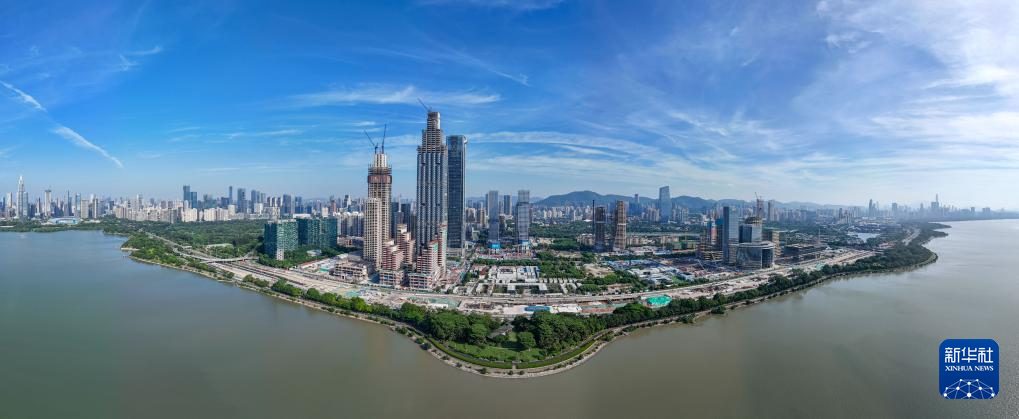 这是正在建设中的深圳湾超级总部基地(10月3日摄,无人机全景照片)。
