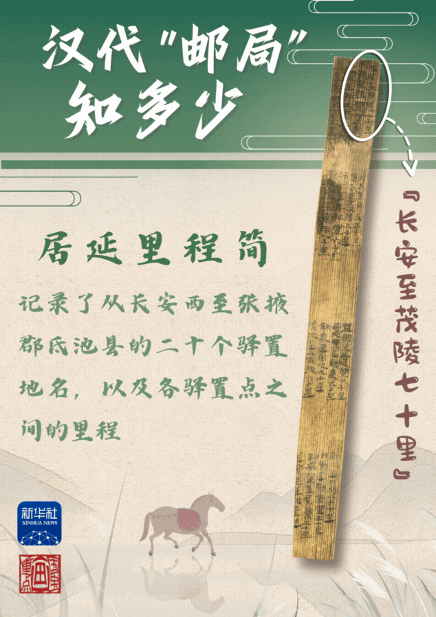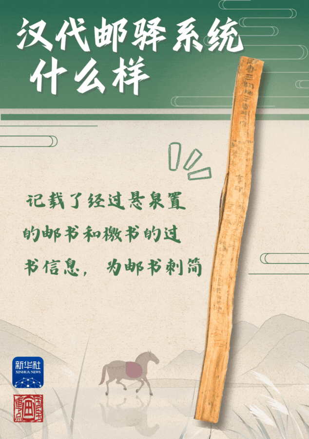 汉代的邮驿路网由设在全国各地交通要道的驿置机构组成,这些机构如同“邮局”,配备专门的车辆马匹和人员,保证上传下达有效运转。根据出土汉简记载,仅从长安至敦煌郡,就设有驿置30多个。根据邮书传递方向的不同,这些文书和信件被称为东书、南书、北书、西书。
