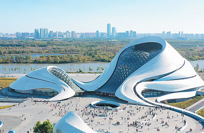 国庆节假期,哈尔滨大剧院成为游客“尔滨”之行的必打卡景点。图为观演市民和游客在剧院广场参观。陈嘉轩摄