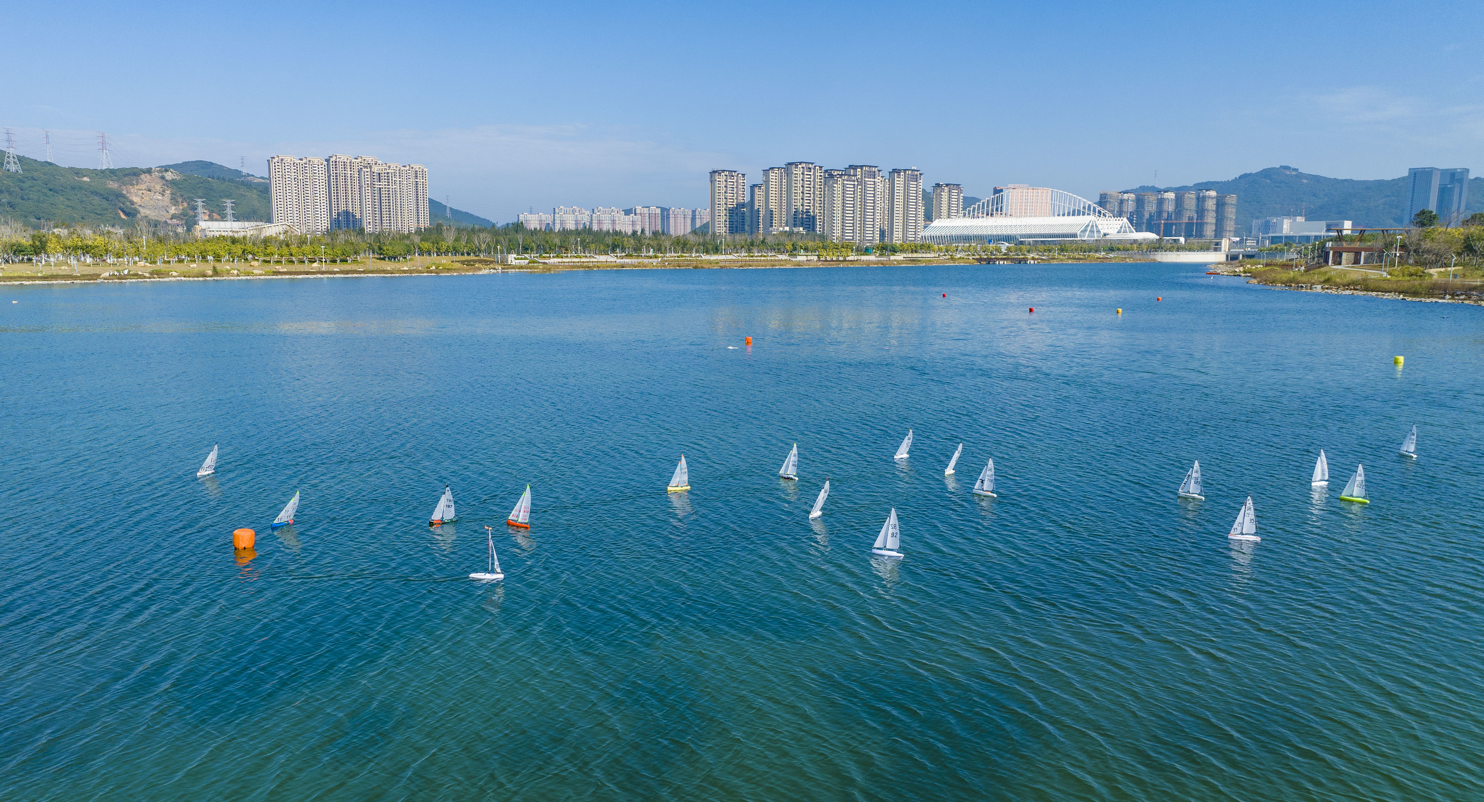 依托特色海岛资源,平潭持续打造丰富多彩的文体赛事活动。图为两岸帆船赛遥控帆船比赛。(林君斌 摄)