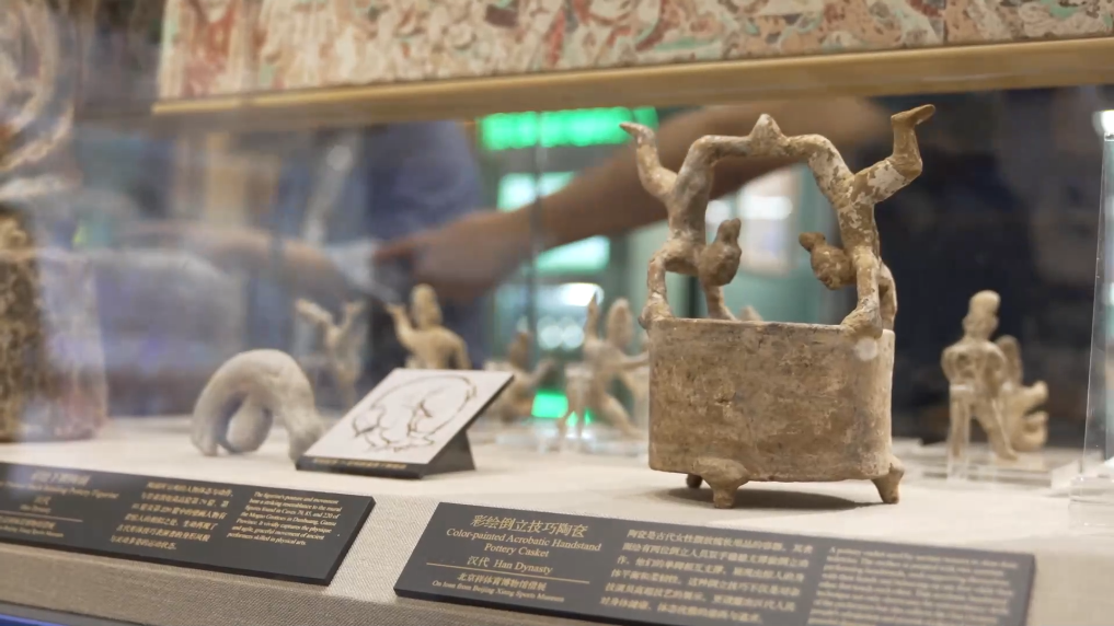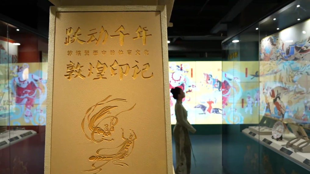 展览以文物、壁画、模型造景和多媒体结合的形式,集中展现了敦煌文化中弓射、马术、武艺、球类、棋类、健身等20余项传统体育游艺活动的生动景象,带领观众沉浸式感受以敦煌文化为代表的中国传统体育文化的魅力。