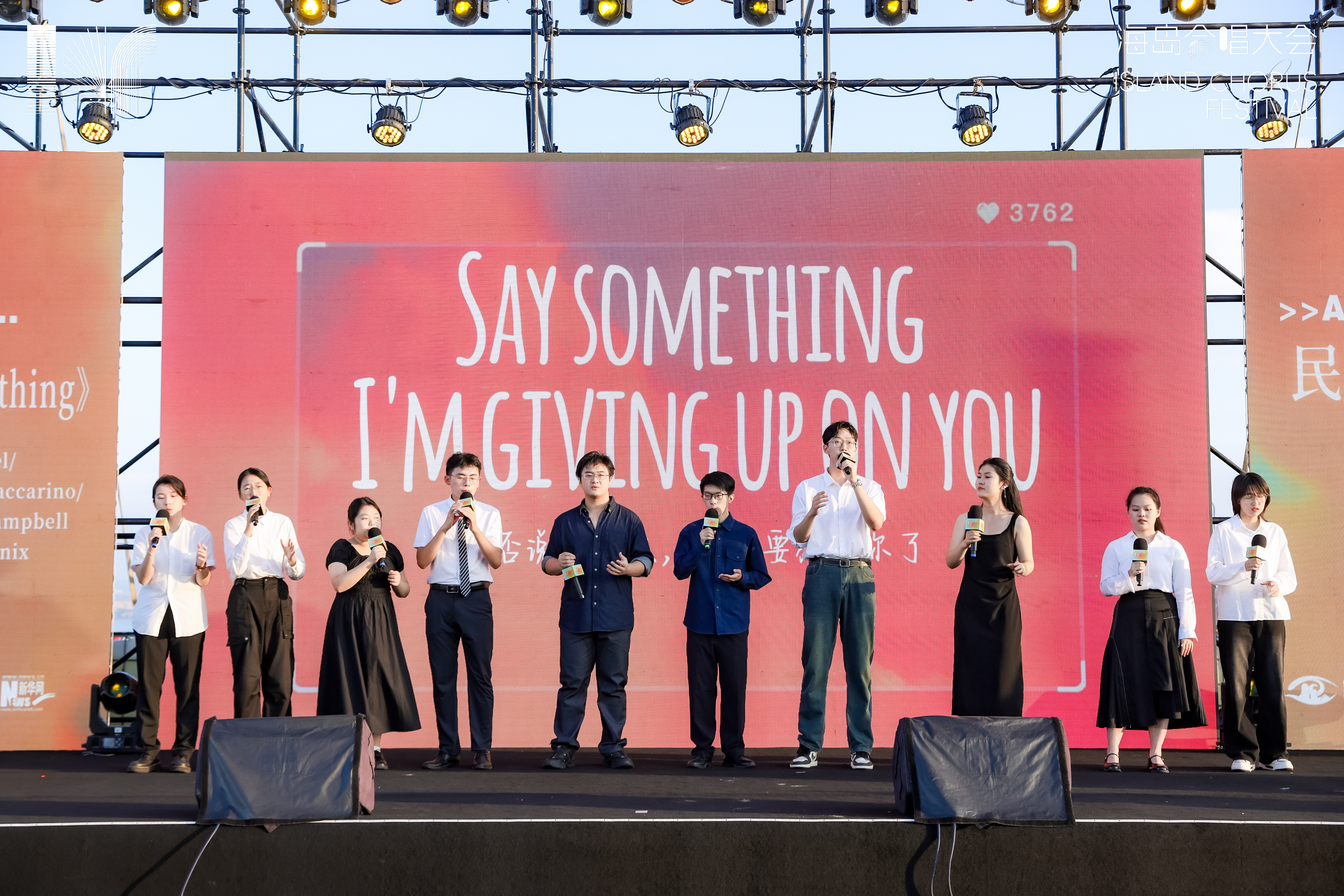 中央音乐学院CAC阿卡贝拉人声社团激动地说:“这次表演的地点非常特别,在舞台上往前一看是观众,往右一看是大海,这种体验太幸福了,想一辈子在这里唱歌。”