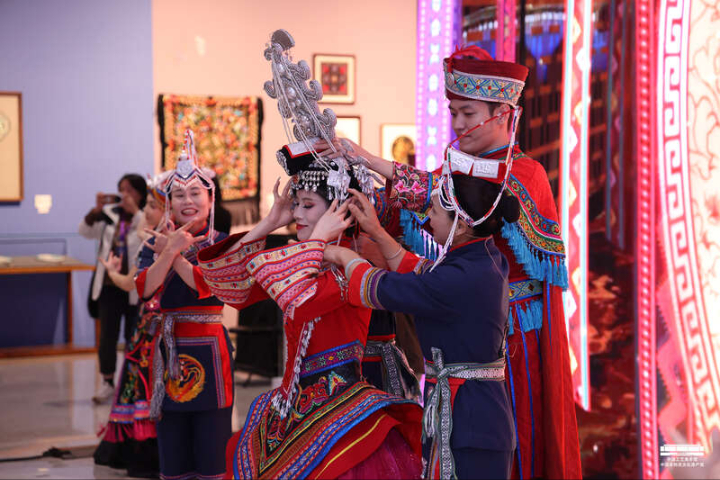 在开幕式上,贵州省级非遗苗绣代表性传承人龙禄颖,讲述了自己带领家乡妇女开展苗绣技能培训、实现家门口就业增收的事迹。来自浙江省台州市的中国工艺美术大师、省级非遗项目台绣代表性传承人林霞,在发言中强调应将传统刺绣与现代艺术融合,以创新理念的表现形式,开拓刺绣新的境界。