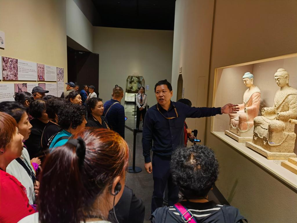 新华社上海10月22日电(记者陈爱平)“十多年前我在2010年上海世博会上大开眼界。现在重游上海,仍有大开眼界的感觉,城市发展真是太快了!”吉林游客张先生22日跟团在沪参观“何以敦煌”敦煌艺术大展,展览举办地中华艺术宫的前身正是原上海世博会中国馆。