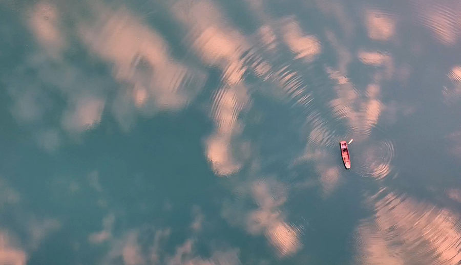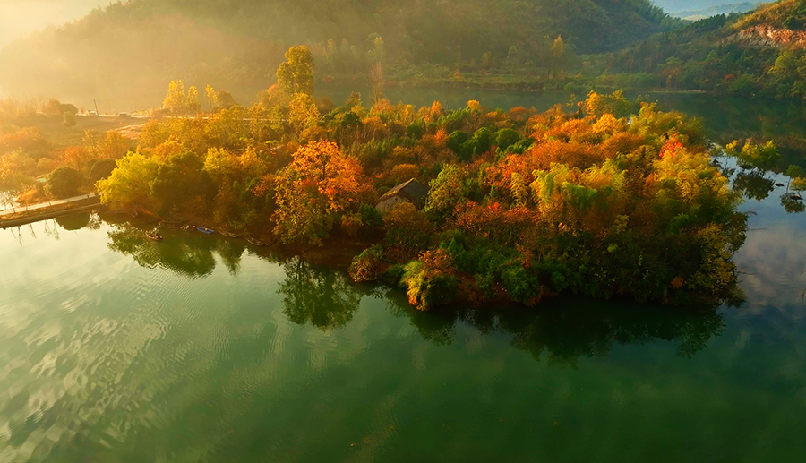 泛舟秋水一湖平 朝霞漫天秋意浓-新华网
