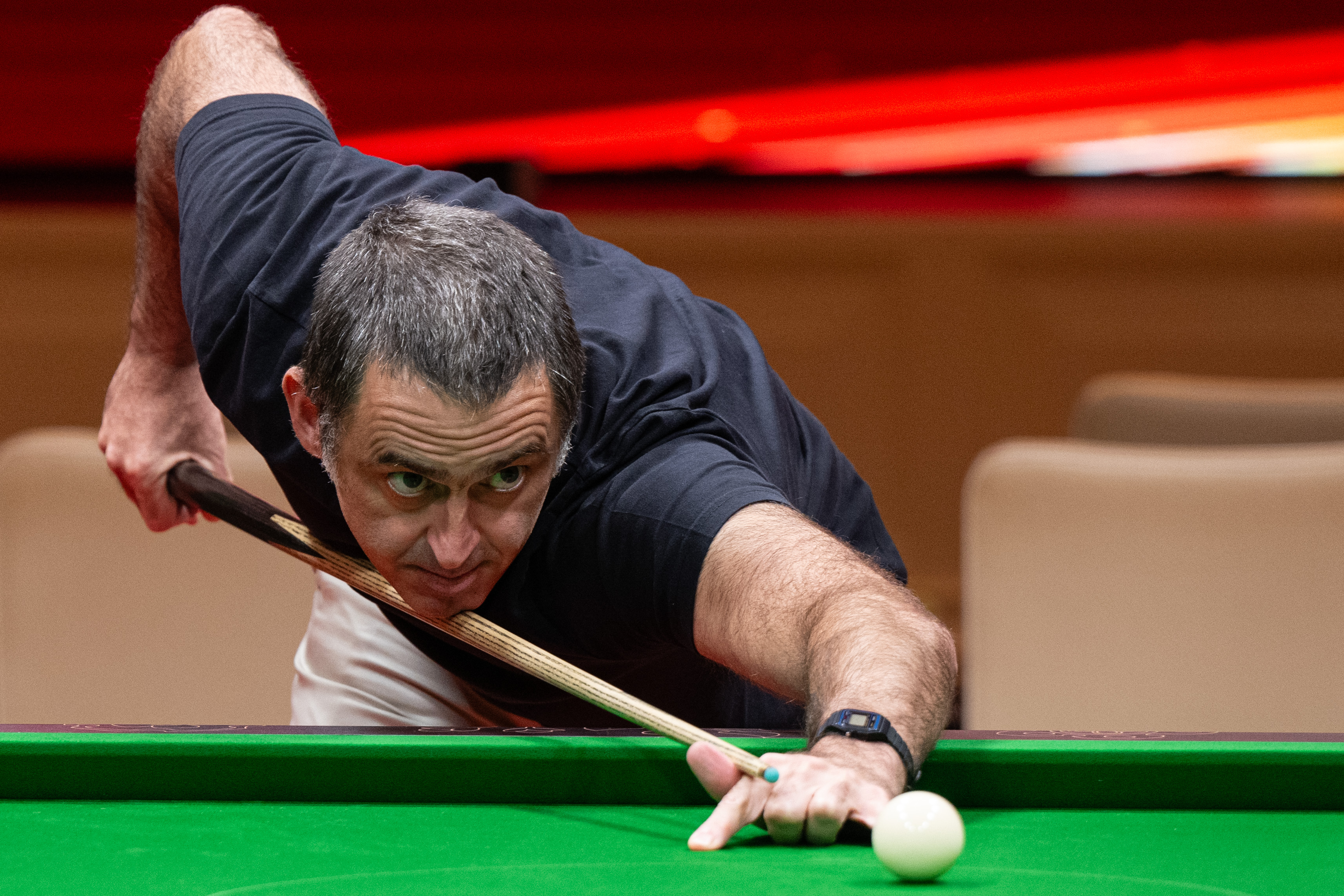 10月31日,英格兰选手奥沙利文在新闻发布会后的球技展示环节中。新华社记者 张金加 摄