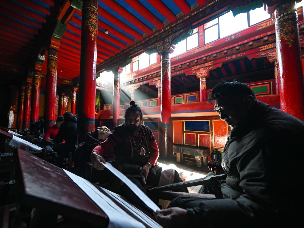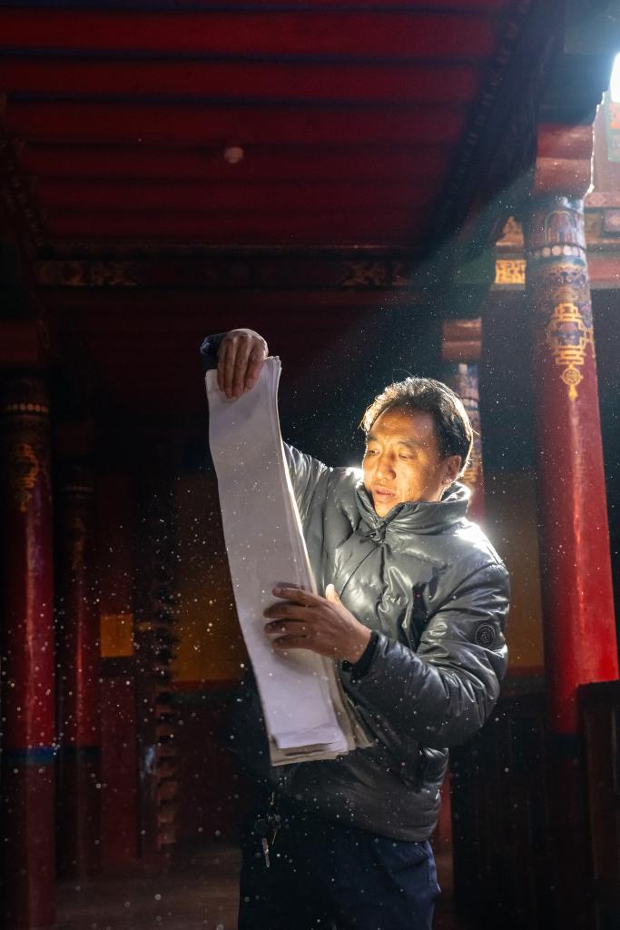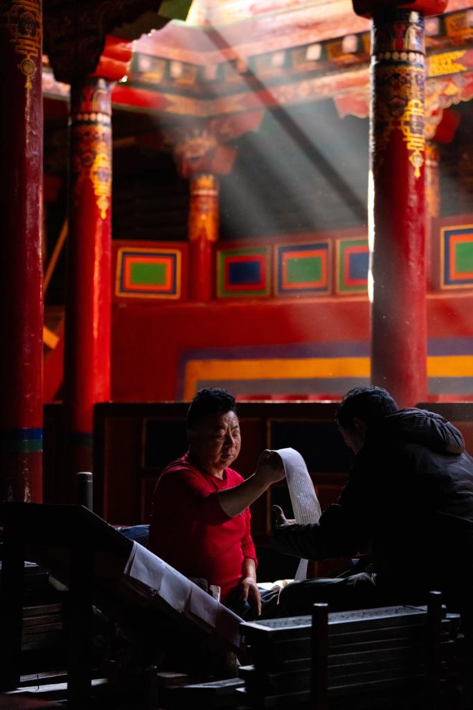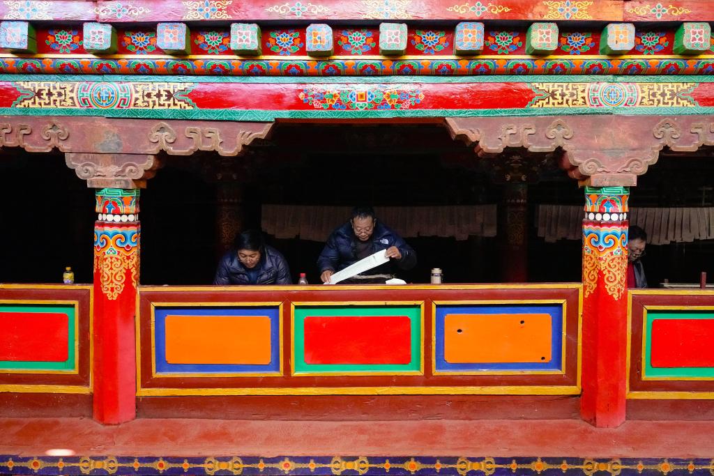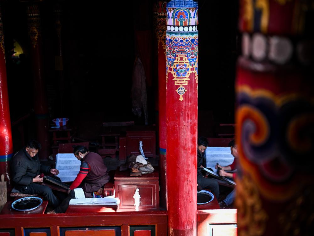 11月2日,德格印经院的工人在校对刚印完的印刷品。