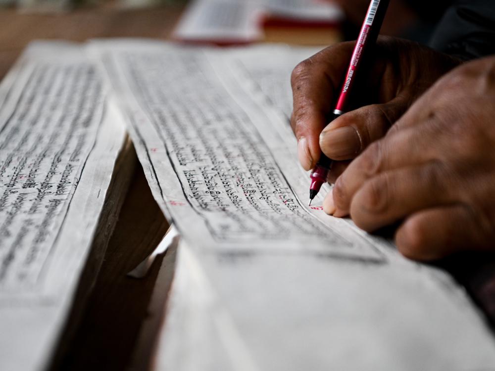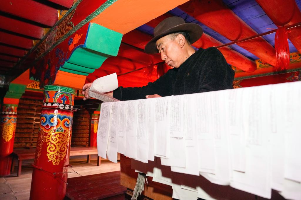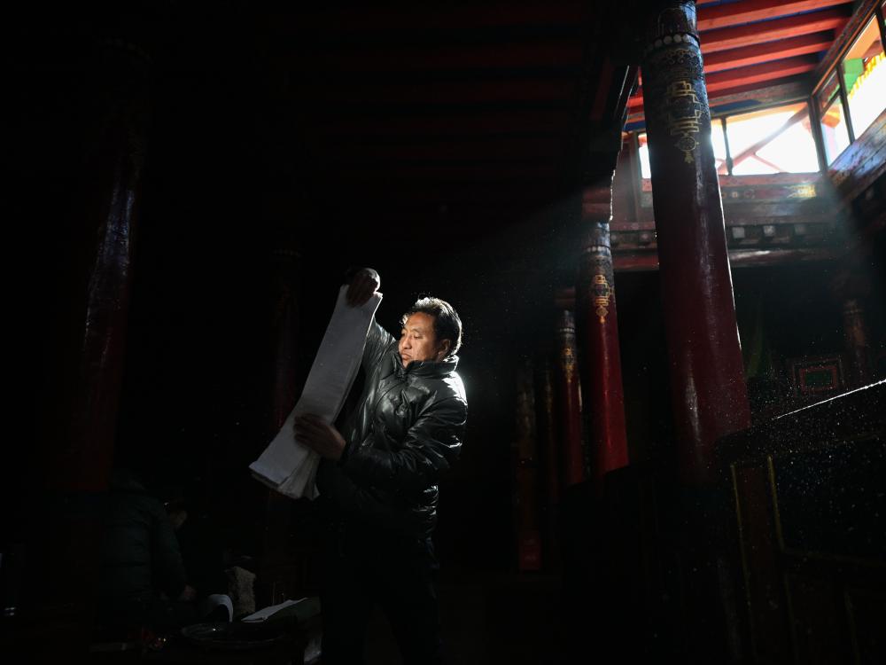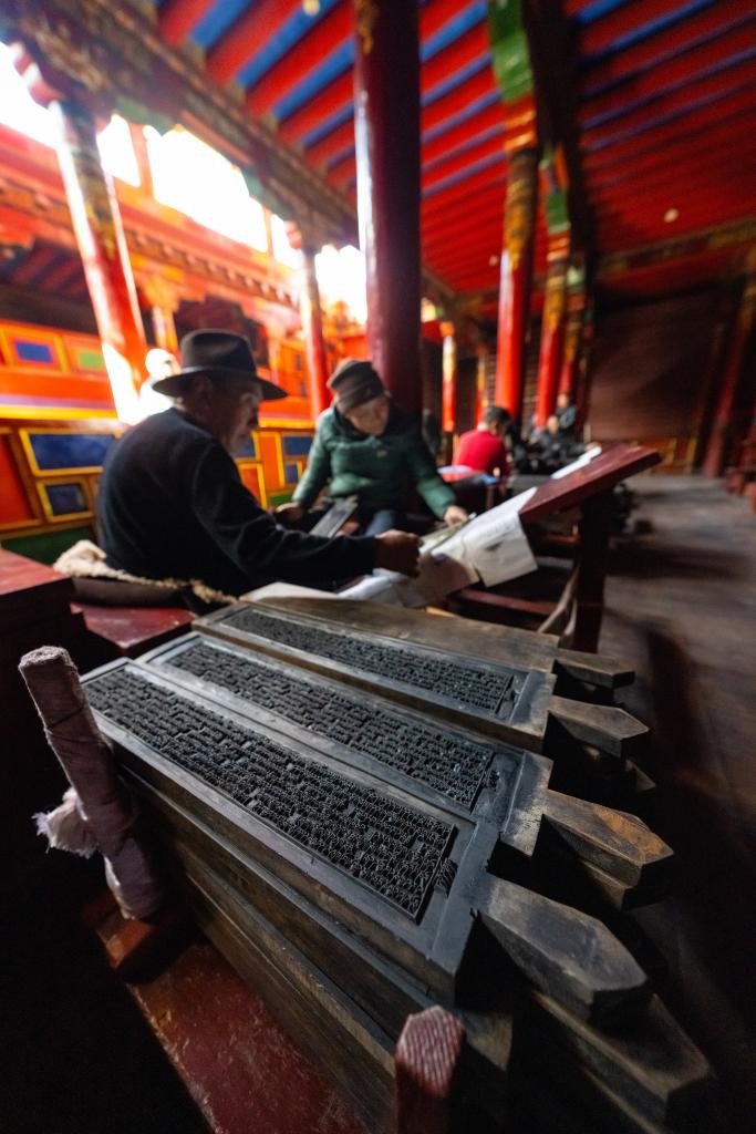 11月2日,德格印经院的工人在校对刚印完的印刷品。