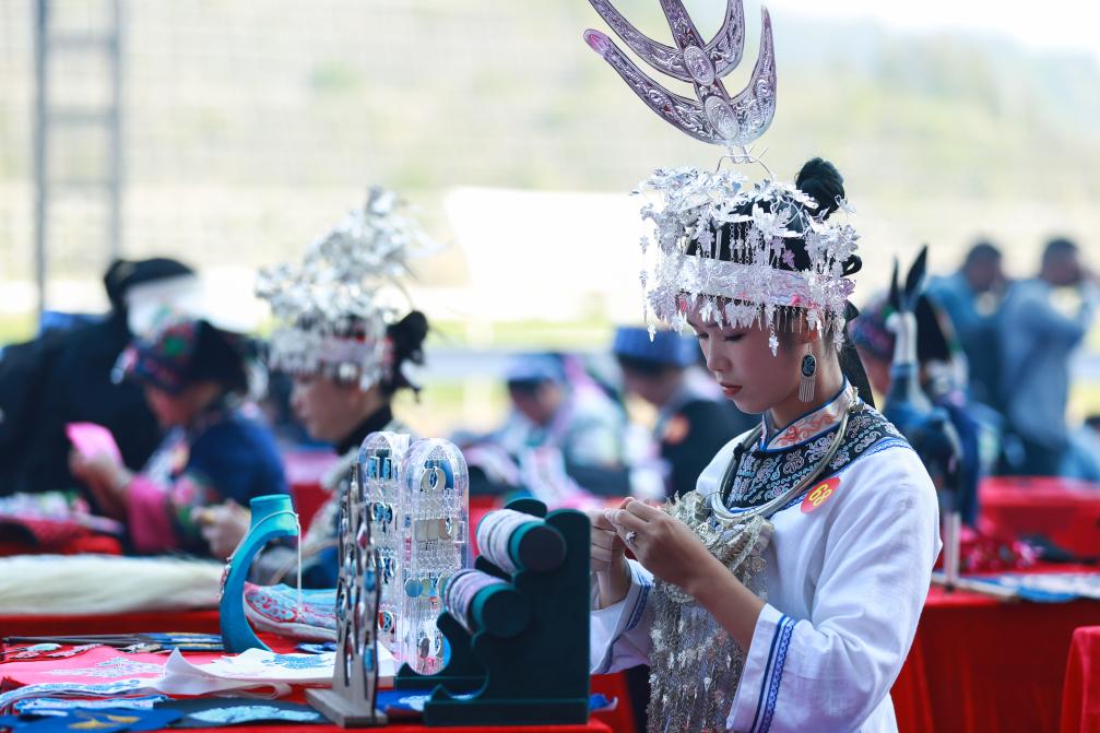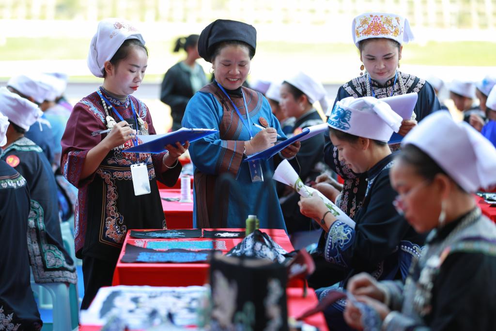 近日,贵州省黔南布依族苗族自治州举办第九届妇女特色手工技能大赛,来自全州各地200余名绣娘齐聚三都水族自治县,参加了水族马尾绣、苗绣及蜡染绘画等比赛,在比赛中相互交流技艺,传承“指尖非遗”。