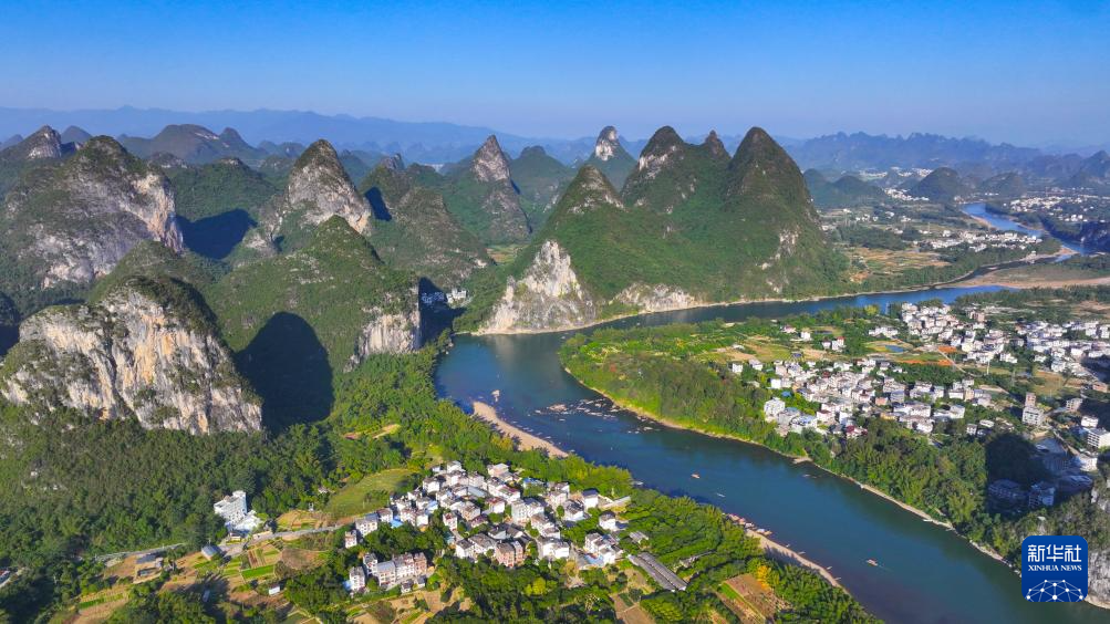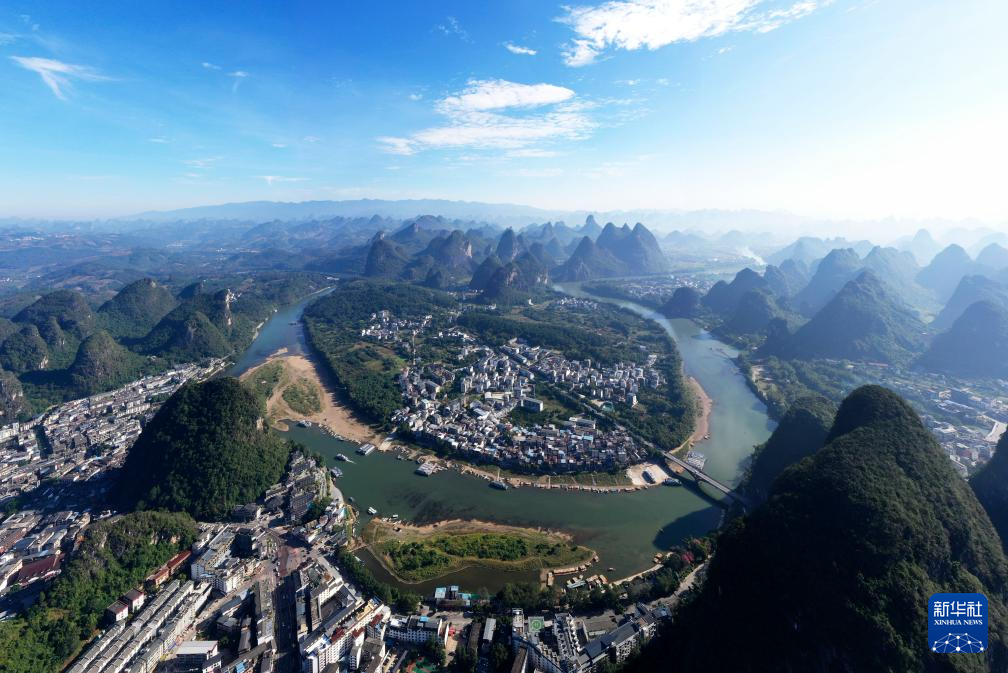 11月1日在广西阳朔县城拍摄的漓江风光(无人机照片)。