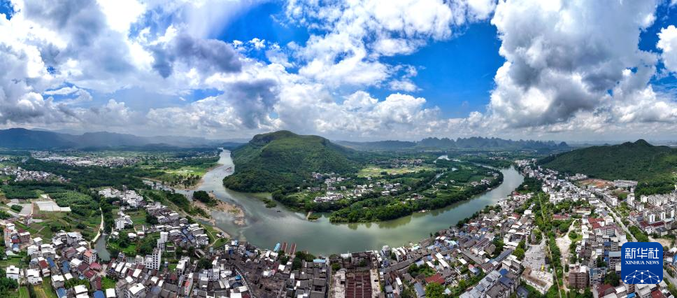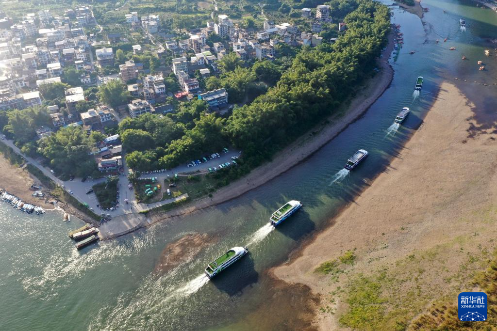 8月23日在广西桂林市灵川县大圩古镇拍摄的漓江两岸风光(无人机照片)。